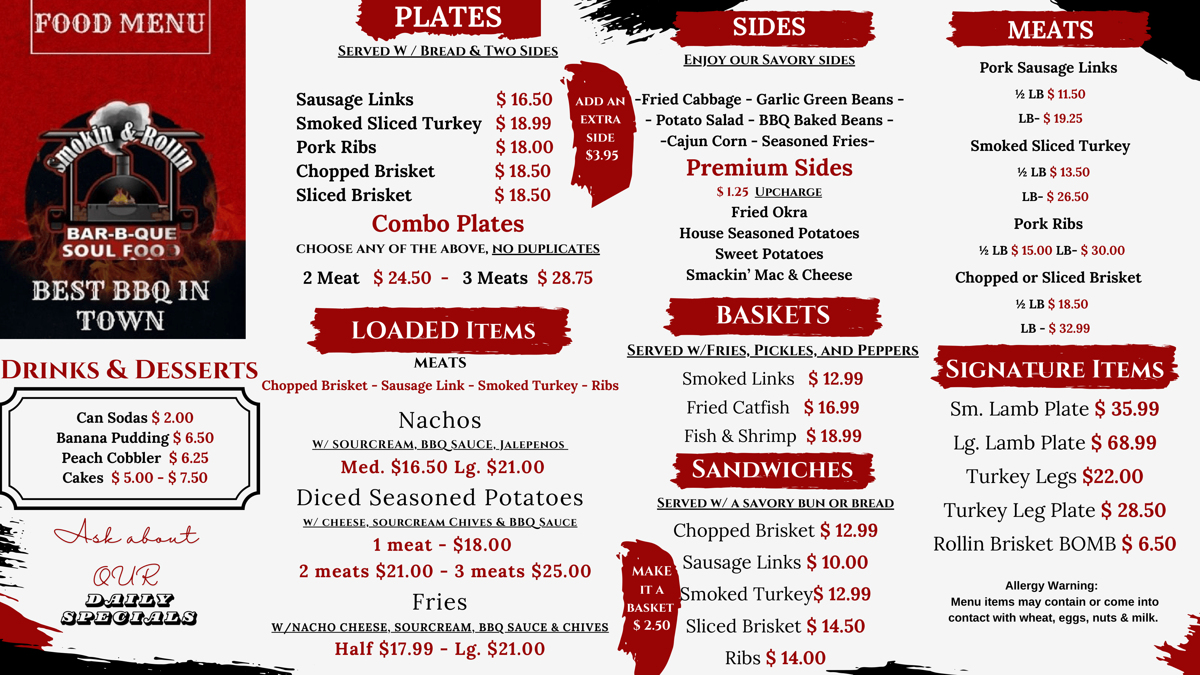 Be sure to check out our Soul Food Sunday menu, available exclusively on Sundays!